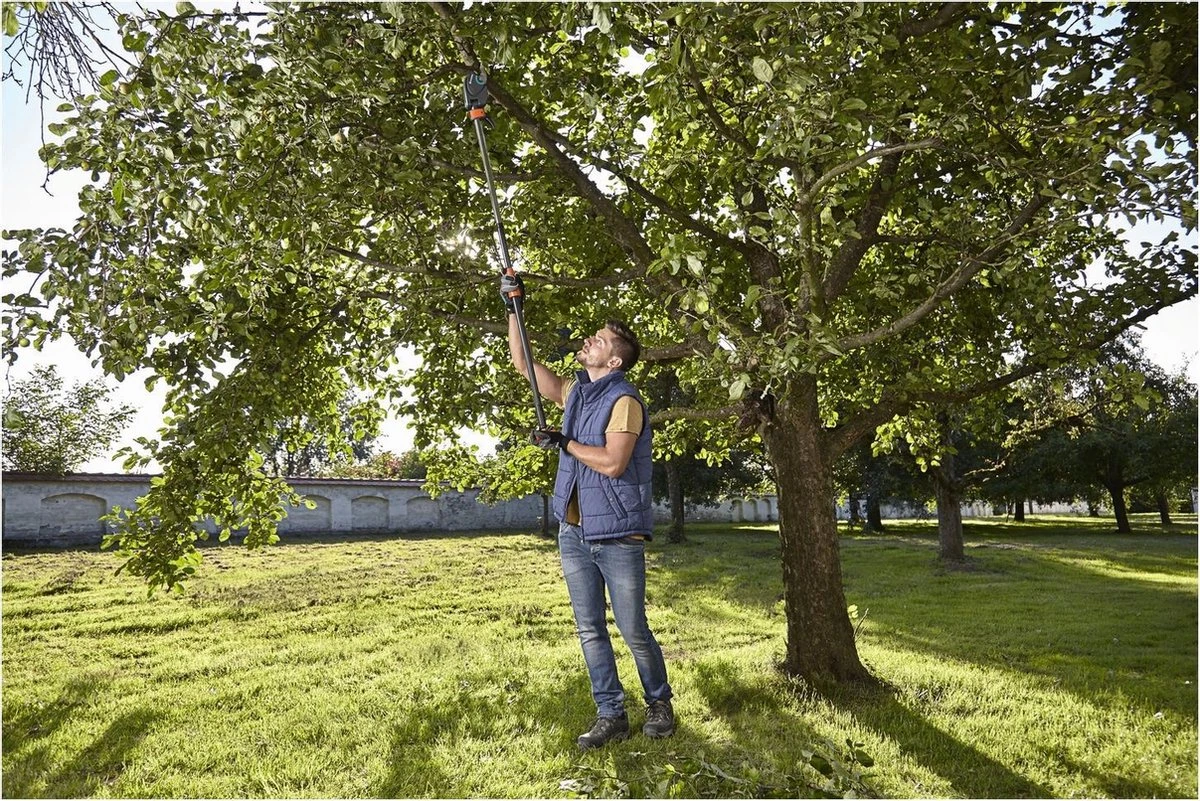 Licht en comfortabel snoeien in hoge bomen en dichte struiken zonder ladder.