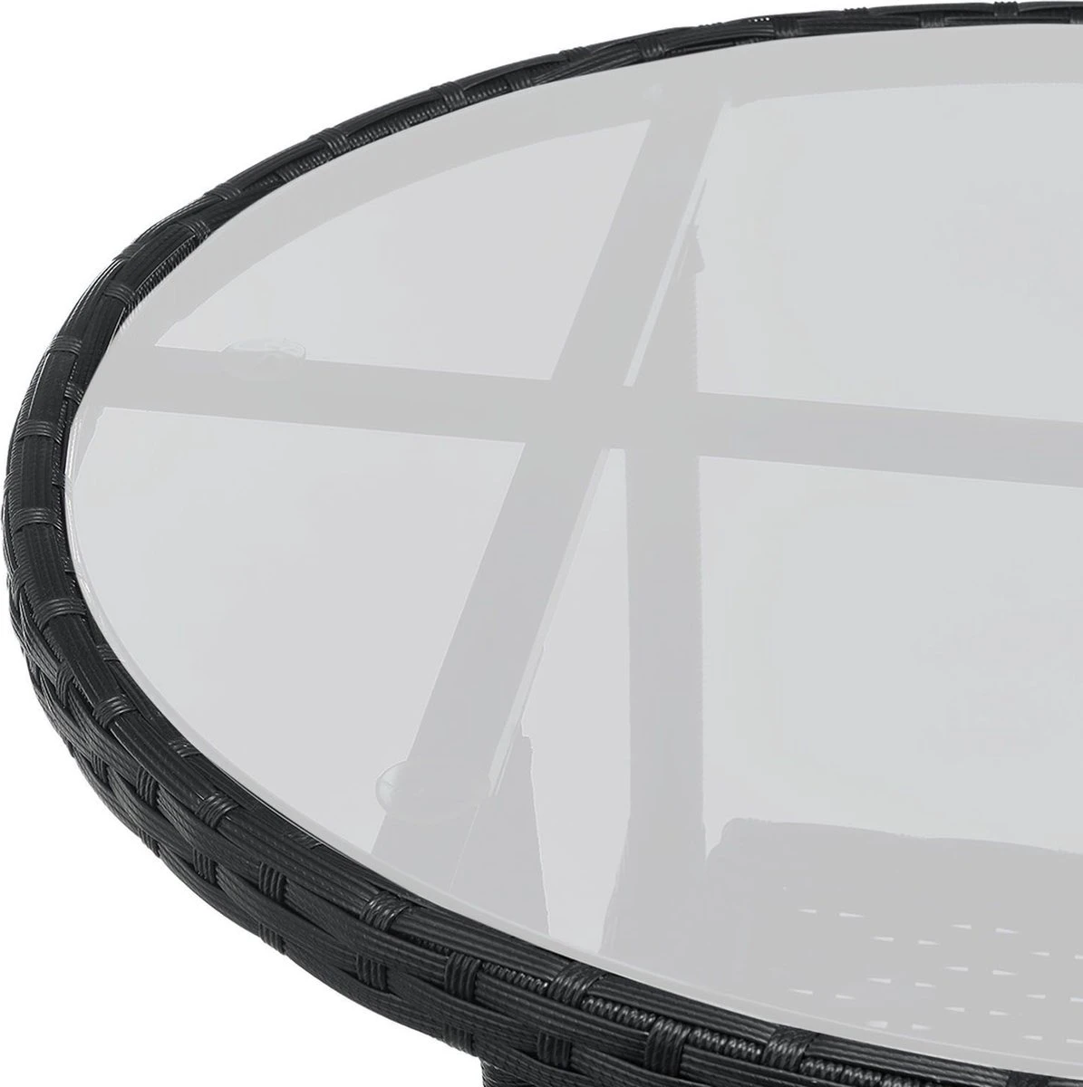 Materiaal tafel: polyrotan, metaal & glas
