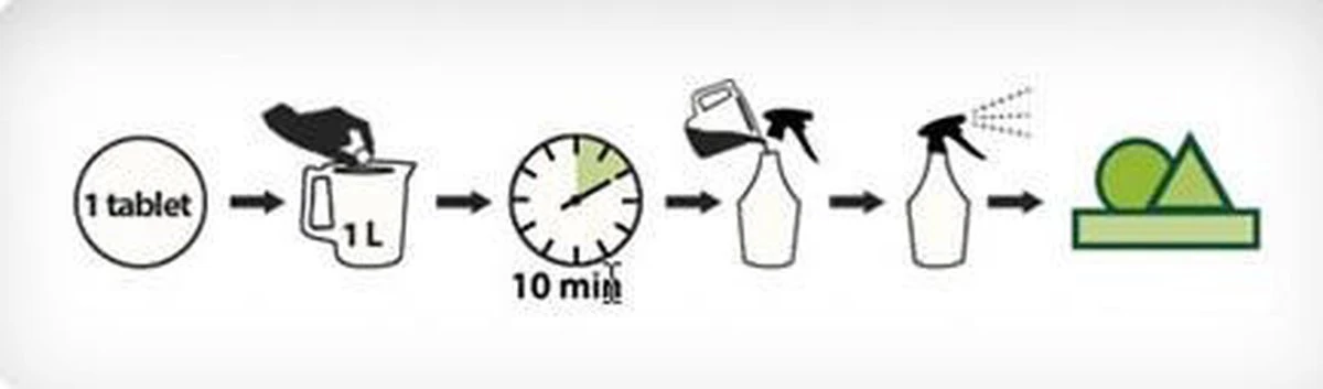 De Buxus Health Mix bestaat uit tabletten die u oplost in water. Laat de tablet minimaal tien minuten op lossen in het water. Daarna kun u het met een drukspuit over uw buxus verspreiden.